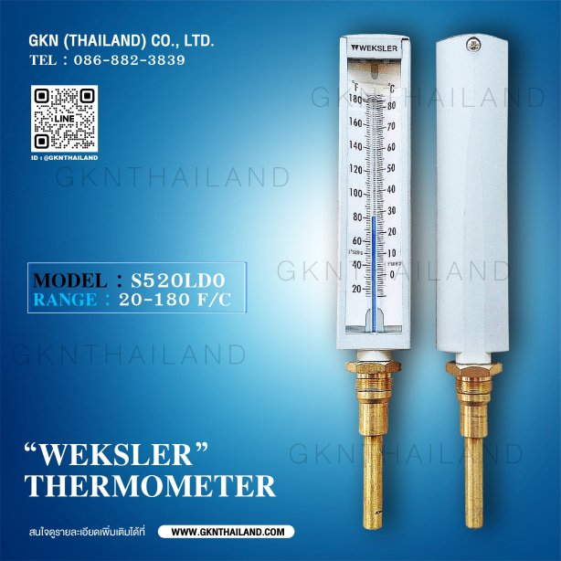 เทอร์โมมิเตอร์ ยี่ห้อ รุ่น S520LD0 อุณหภูมิ 20-180 F/C ก้านออกล่าง