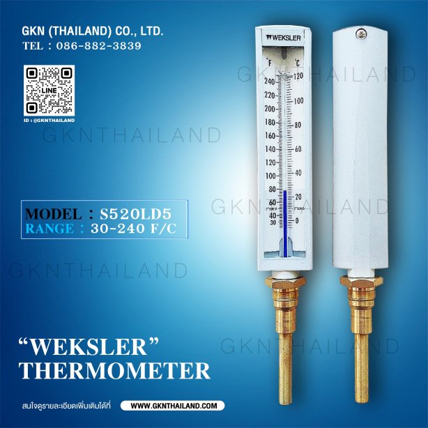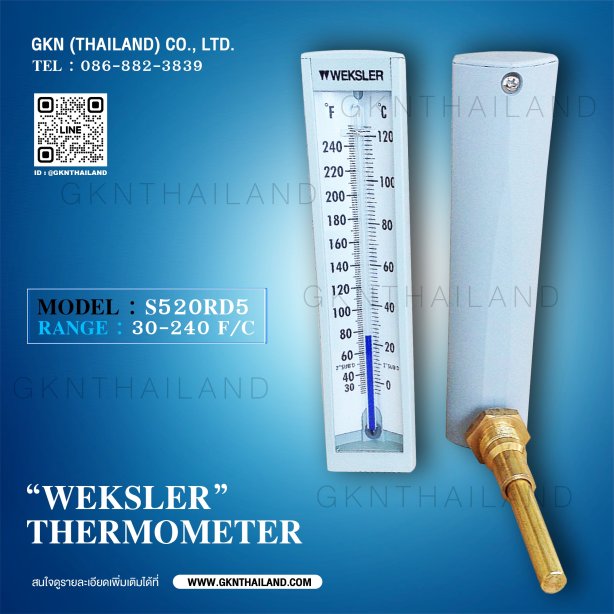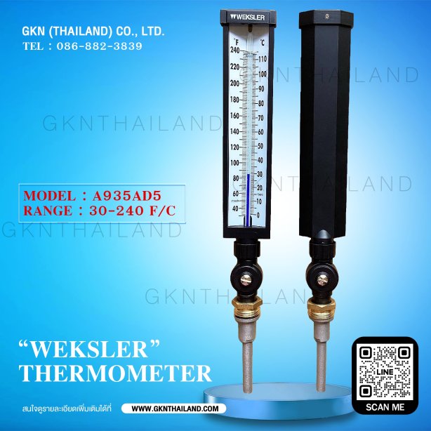 "WEKSLER" ADJUSTABLE ANGLE THERMOMETER MODEL : A935AD5 30-240 F&C WEKSLER เทอร์โมมิเตอร์แบบปรับได้ รุ่น A935AD5 อุณหภูมิ 30-240 F&C ปรอทยาว 9 นิ้ว ก้านยาว 3.5 นิ้ว