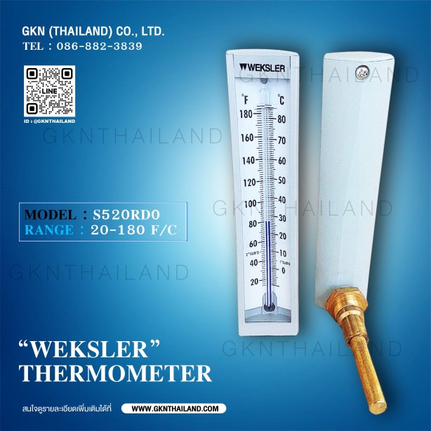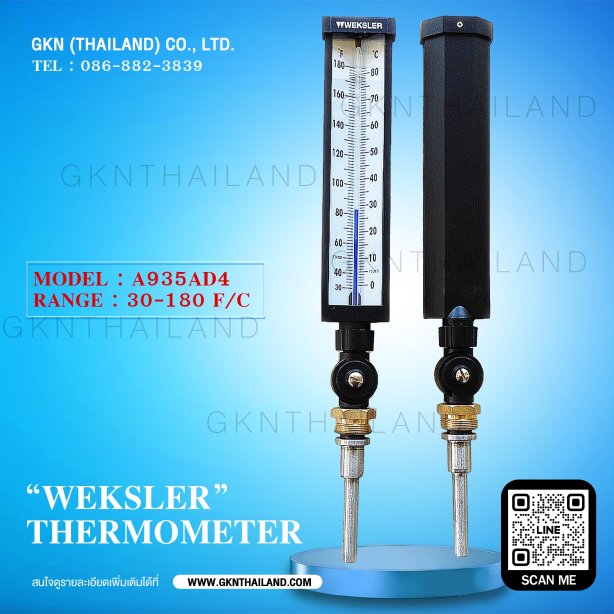 "WEKSLER" ADJUSTABLE ANGLE THERMOMETER MODEL : A935AD4 30-180 F&C WEKSLER เทอร์โมมิเตอร์แบบปรับได้ รุ่น A935AD4 อุณหภูมิ 30-180 F&C ปรอทยาว 9 นิ้ว ก้านยาว 3.5 นิ้ว