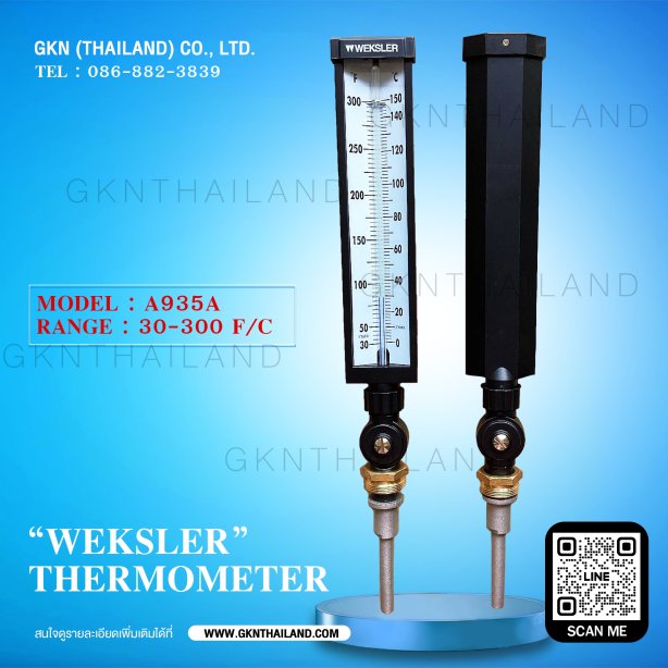 "WEKSLER" ADJUSTABLE ANGLE THERMOMETER MODEL : A935AD6 30-300 F&C WEKSLER เทอร์โมมิเตอร์แบบปรับได้ รุ่น A935AD6 อุณหภูมิ 30-300 F&C ปรอทยาว 9 นิ้ว ก้านยาว 3.5 นิ้ว