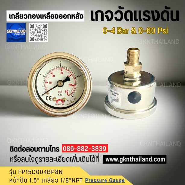 เกจวัดแรงดันยี่ห้อ Safegauge 0-4 บาร์ ตัวเรือนสแตนเลส ขนาดหน้าปัทม์ 1.5" เกลียวทองเหลืองออกหลัง 1/8"NPT