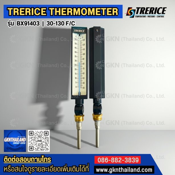 เทอร์โมมิเตอร์แบบปรับได้ ยี่ห้อ "TRERICE" รุ่น BX91403-43 ช่วงการวัดอุณหภูมิ 30-130 องศาฟาเรนไฮต์ 0-55 องศาเซลเซียส ตัวปรอทยาว 9 นิ้ว ก้านวัดยาว 3.5 นิ้ว