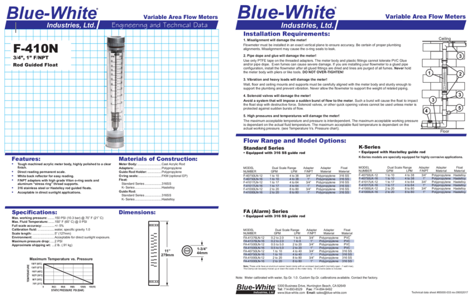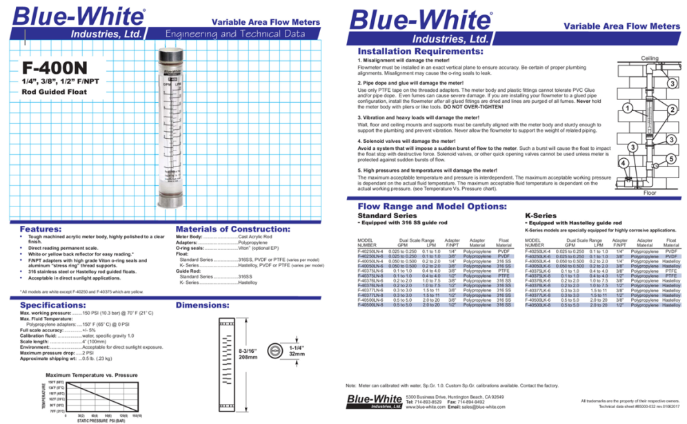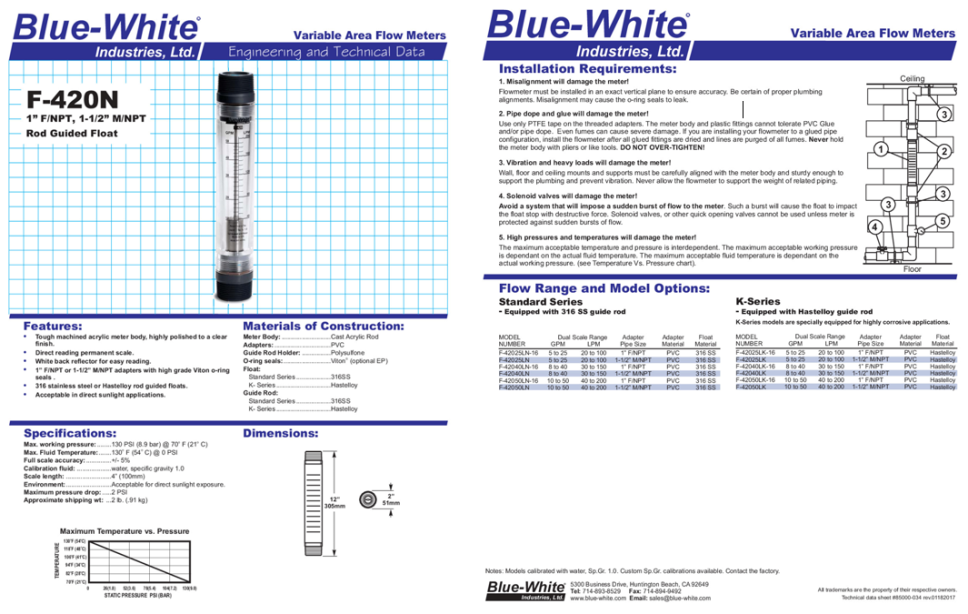 FLOWMETER F-451 SERIES [BLUEWHITE]