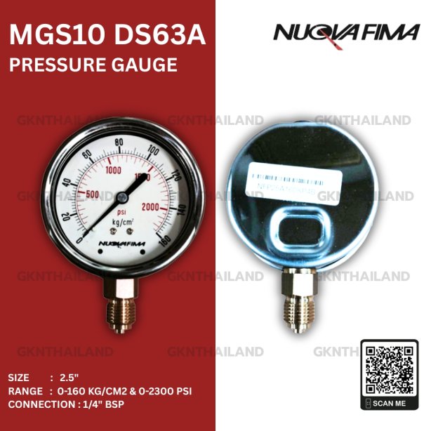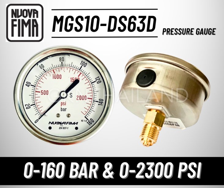 2.5 นิ้ว 0-160BAR (2300PSI) ออกหลัง เกลียว 1/4" BSP ทองเหลือง