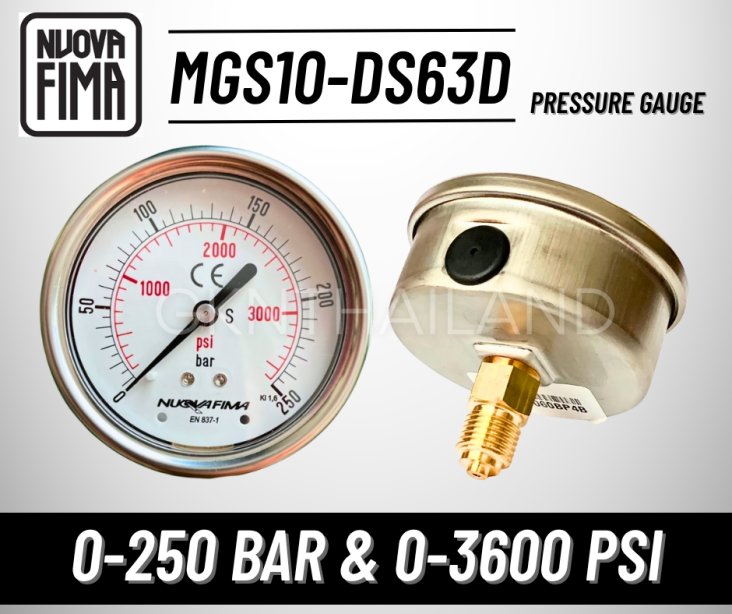 2.5 นิ้ว 0-250BAR (3600PSI) ออกหลัง เกลียว 1/4" BSP ทองเหลือง