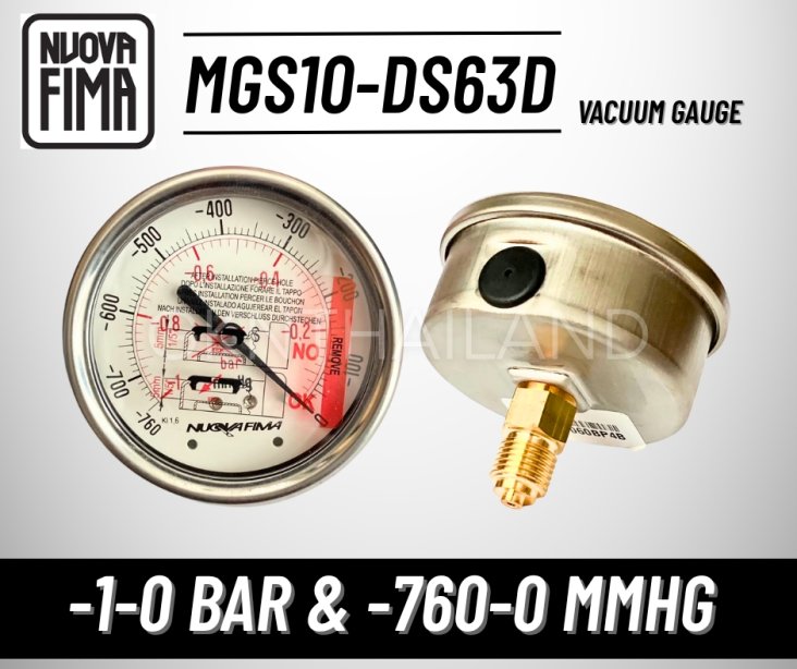 2.5 นิ้ว -1-0BAR (-760-0 MMHg) ออกหลัง เกลียว 1/4" BSP ทองเหลือง