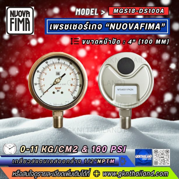 4 นิ้ว 0-11 KG/CM2 (0-160PSI) เกลียวสแตนเลสออกล่าง 1/2"NPT