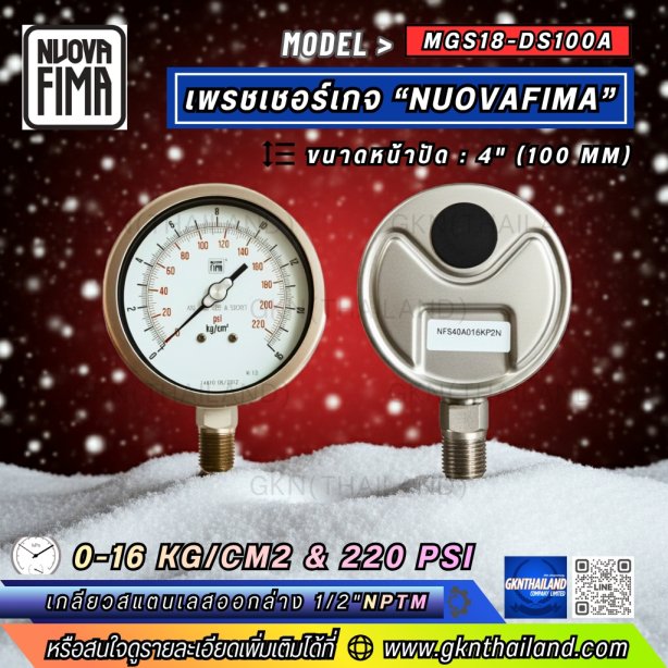 4 นิ้ว 0-16 KG/CM2 (0-220PSI) เกลียวสแตนออกล่าง 1/2"NPT