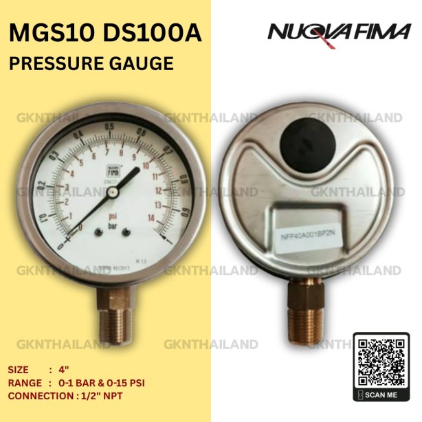 4 นิ้ว 0-1 BAR (0-14PSI) เกลียวสแตนเลสออกล่าง 1/2"NPT