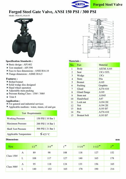 Arita Forged Steel Gate Valve Class 150PSI & 300PSI