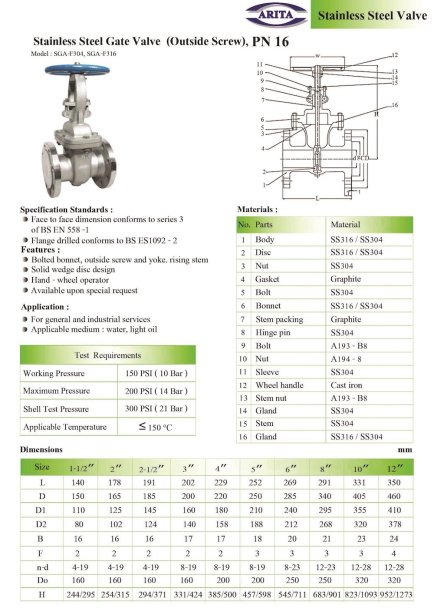 Arita Stainless Steel Gate Valve (OS&Y), PN16
