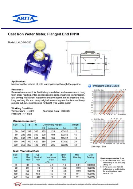 มิเตอร์น้ำสำหรับน้ำเย็น ตัวเรือนทำจากเหล็กหล่อ (Cast Iron) แข็งแรงทนทาน เหมาะสำหรับงานติดตั้งในระบบอุตสาหกรรมหรือสาธารณูปโภคที่ต้องการความแม่นยำในการวัดอัตราการไหลของน้ำ ขนาด ตั้งแต่ 2 นิ้ว (DN50) จนถึง 12 นิ้ว (DN300)