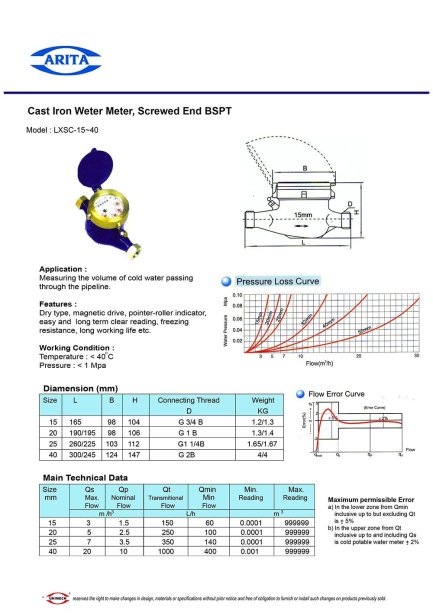 มิเตอร์น้ำ ยี่ห้อ ตัวเรือนทำจากเหล็กหล่อ (Cast Iron) แข็งแรง ทนทาน เหมาะสำหรับงานอุตสาหกรรม และระบบประปา ขนาด 1/2"-1.1/2"
