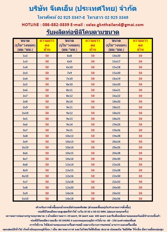 หมวดหมู่ : SILICONE (ผลิตภัณฑ์ยางซิลิโคน) ,  ท่อซิลิโคน (Silicone Tube) ,