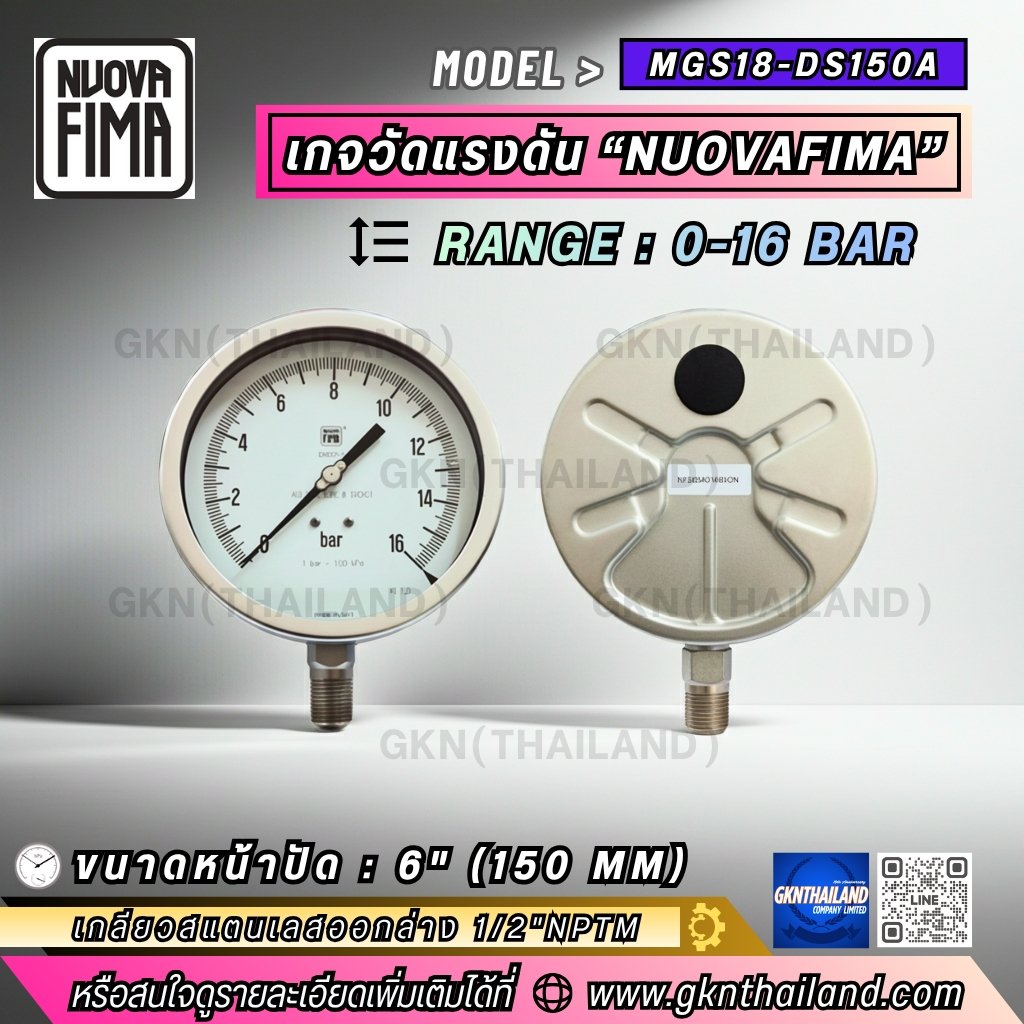 หมวดหมู่ : Pressure Gauge (เกจวัดแรงดัน) ,  NUOVA FIMA PRESSURE GAUGE ,  6" เกลียวสแตนเลสออกล่าง ,