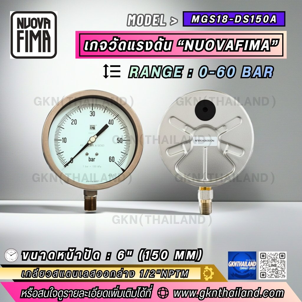 PRESSURE GAUGE 6 นิ้ว 0-60 BAR